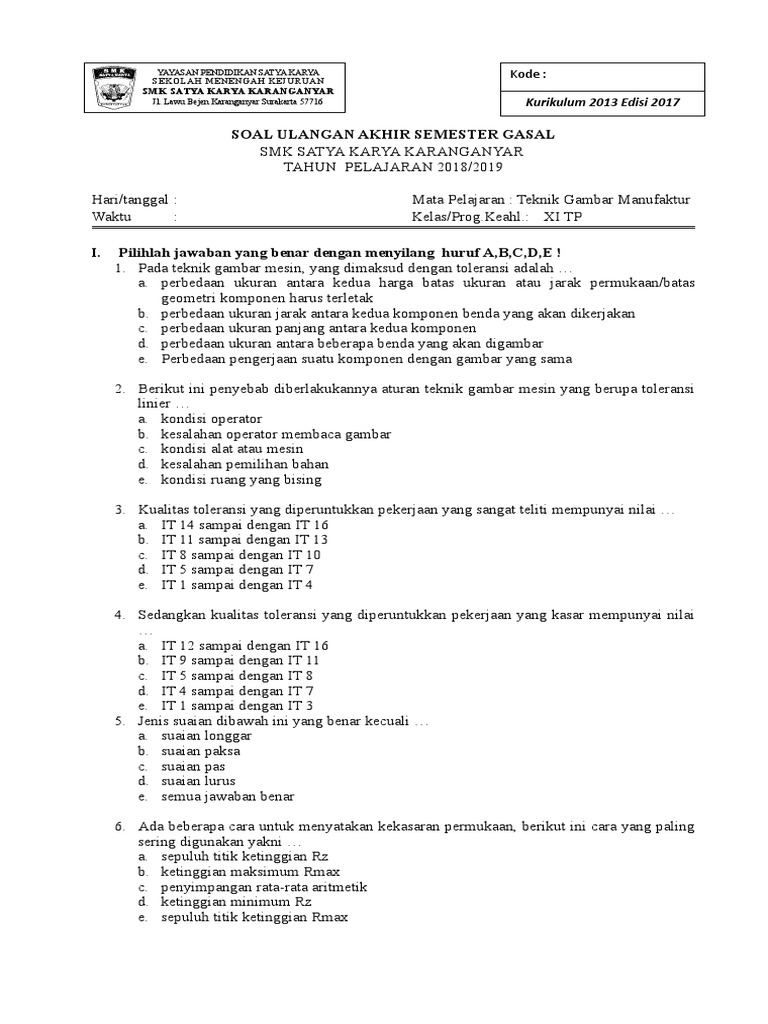 Soal pilihan ganda gambar teknik dan jawabannya. Kertas gambar yang memiliki ukuran 420x297 mm. Berisi tentang media pembelajaran teknik otomotif dan segala sesuatu terkait otomotif. A jepang (jis) b belanda (nen) c inggris (ing) d jepang (jis) e belanda (nen) 2 ukuran bersih ukuran kertas gambar a3 adalah…. 1023 spk teknik gambar bangunan. Pilihlah jawaban yang kau anggap benar dengan menyilang huruf a,b,c. Salah satunya adalah contoh soal latihan ukg teknik otomotif smk online dan juga mapel. Soal isir gambar teknik otomotif / doc soal gambar teknik smk antox siswanto academia edu. .pekerjaan dasar teknik otomotif : Gambar teknik memiliki arti yang sangat luas, termasuk gambar apapun yang digunakan untuk menyampaikan suatu tujuan gambar teknik. Uts gambar teknik 2016 2017 i s t i a r t o. Soal isir gambar teknik otomotif : Kumpulan jawaban dan soal otomotif tkr dan tsm.